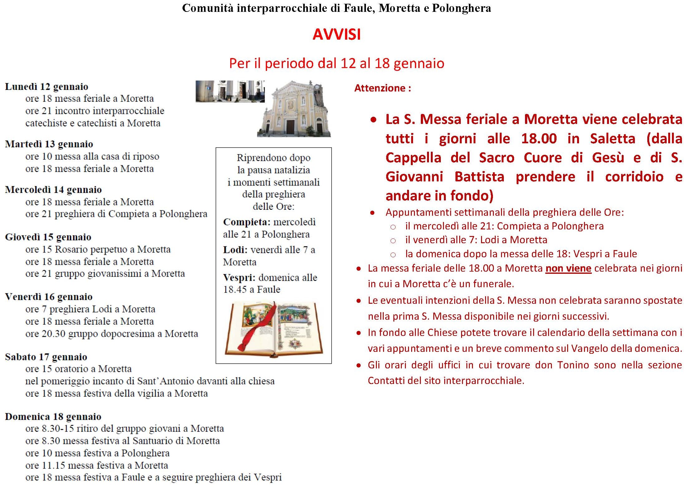AVVISI NELLA NOSTRA COMUNITA' INTERPARROCCHIALE - DAL 12 AL 18 GENNAIO