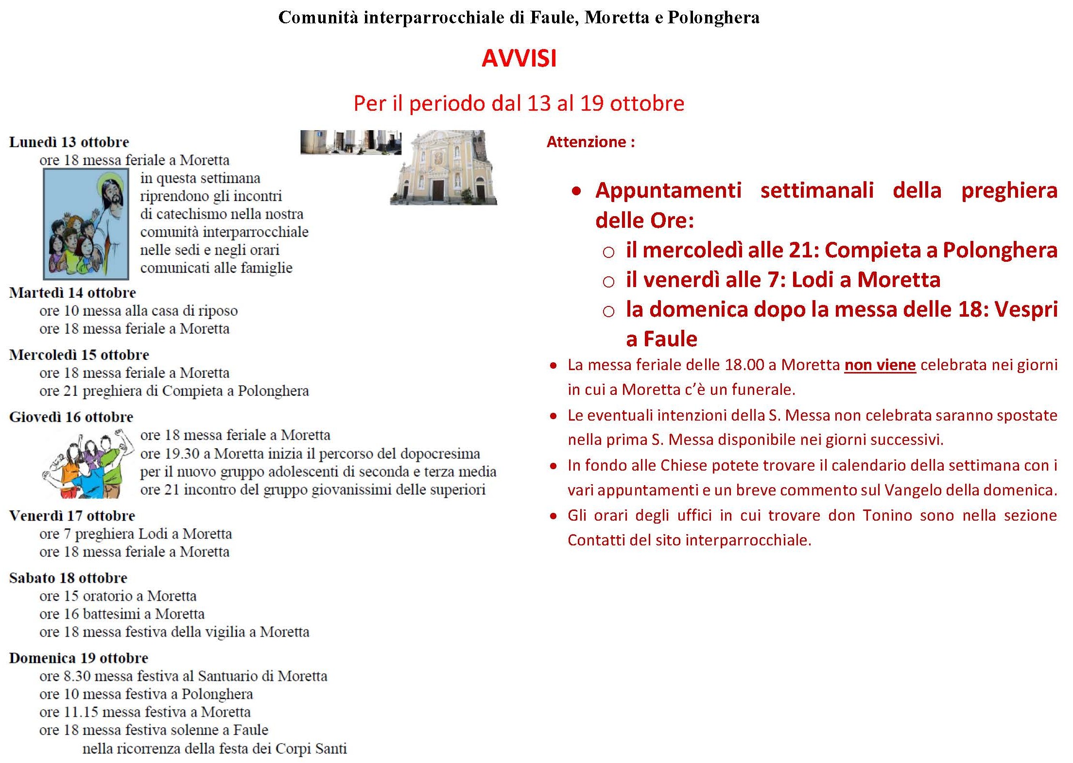 AVVISI NELLA NOSTRA COMUNITA' INTERPARROCCHIALE - DAL 13 AL 19 OTTOBRE 2025