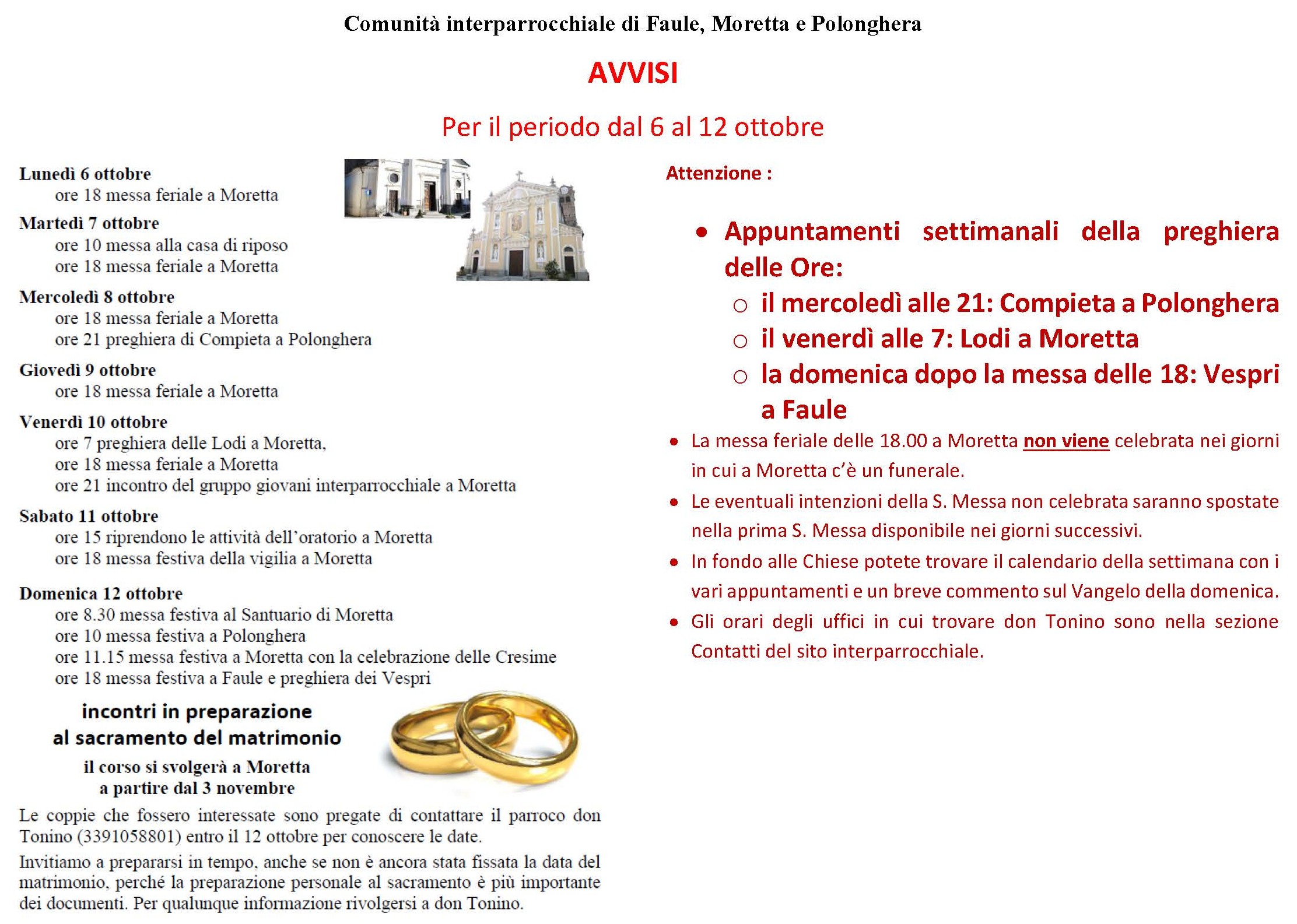 AVVISI NELLA NOSTRA COMUNITA' INTERPARROCCHIALE - DAL 6 AL 12 OTTOBRE 2025