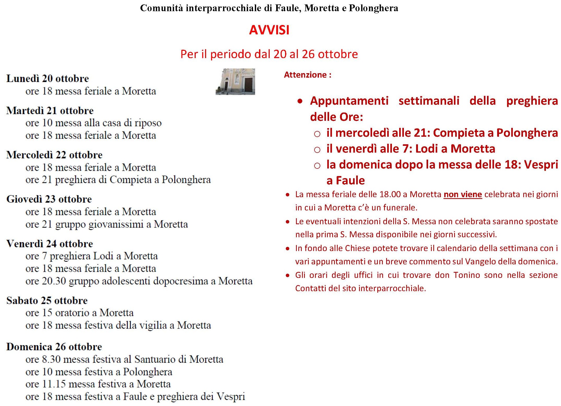 AVVISI NELLA NOSTRA COMUNITA' INTERPARROCCHIALE - DAL 20 AL 26 OTTOBRE 2025