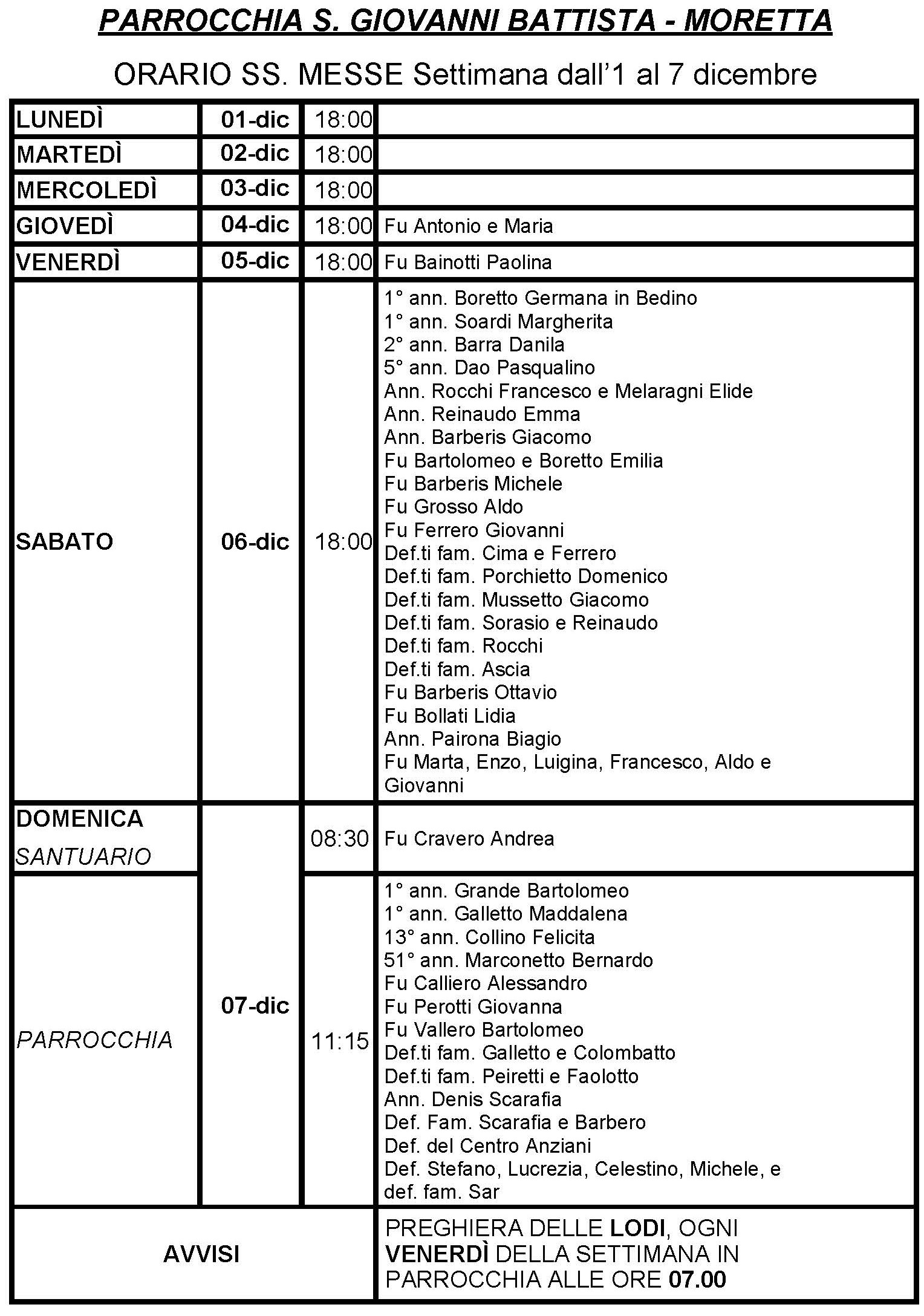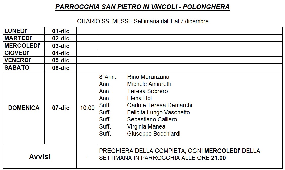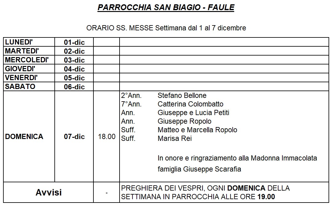 ORARIO S. MESSE