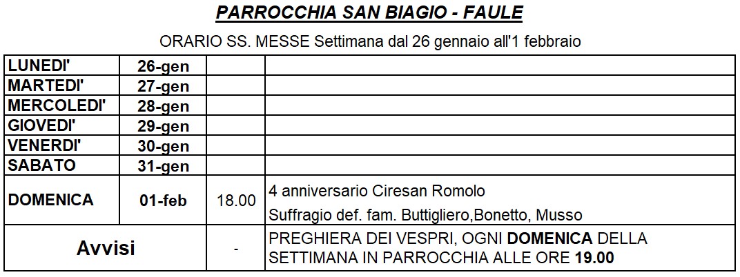 INTENZIONI DI PREGHIERA E SUFFRAGIO