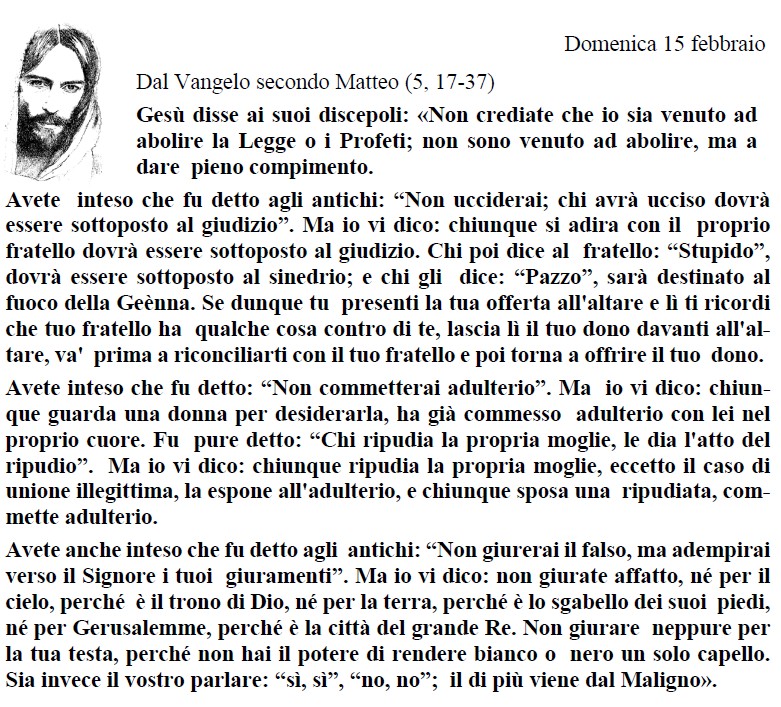 VANGELO DI DOMENICA 15 FEBBRAIO 2026